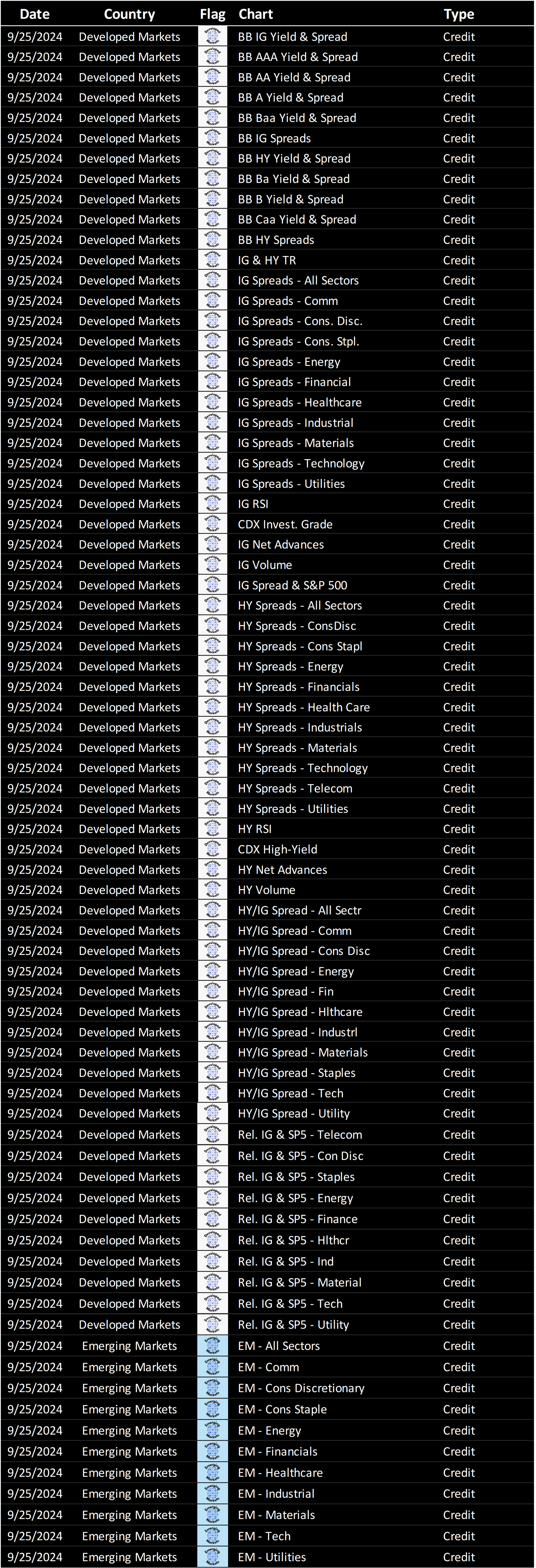 Weekly rotation of debt-based charts