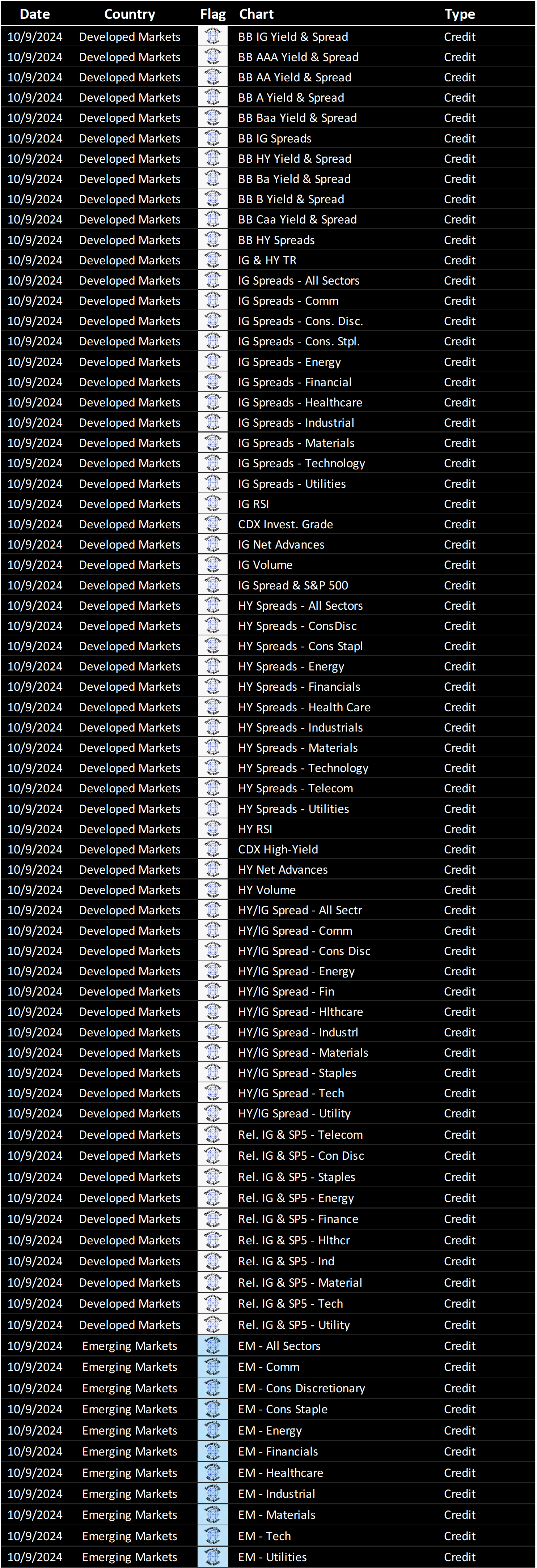 Weekly rotation of debt-based charts