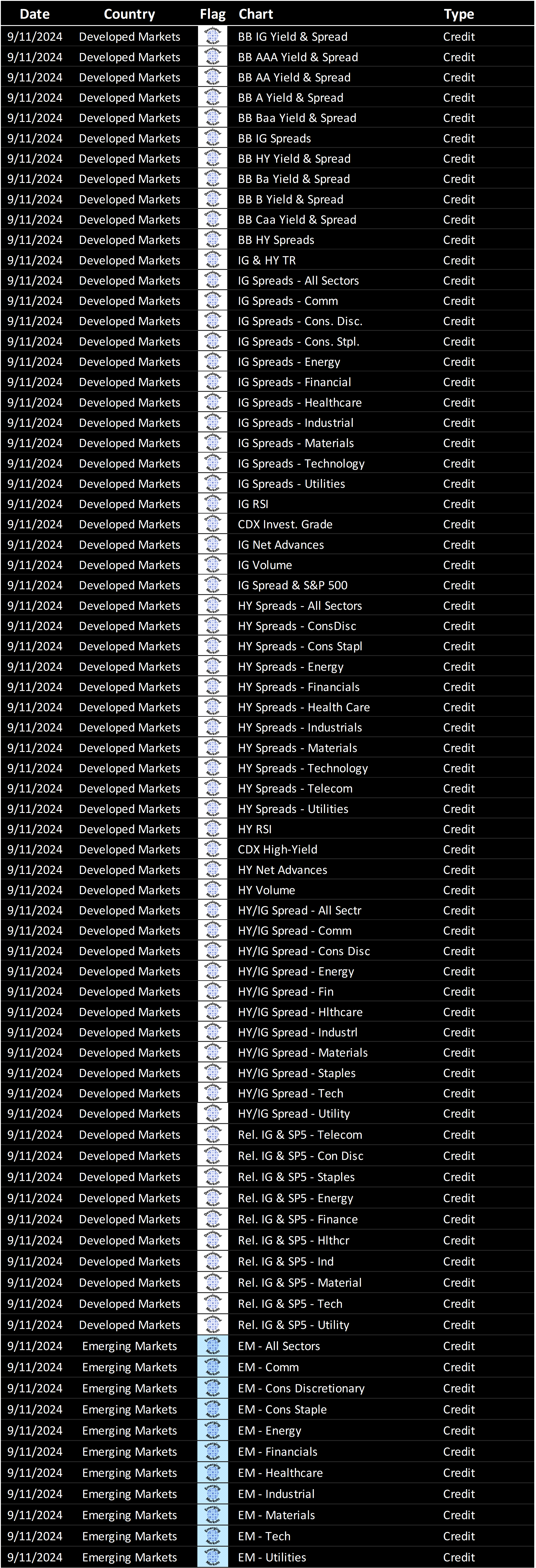 Weekly rotation of debt-based charts