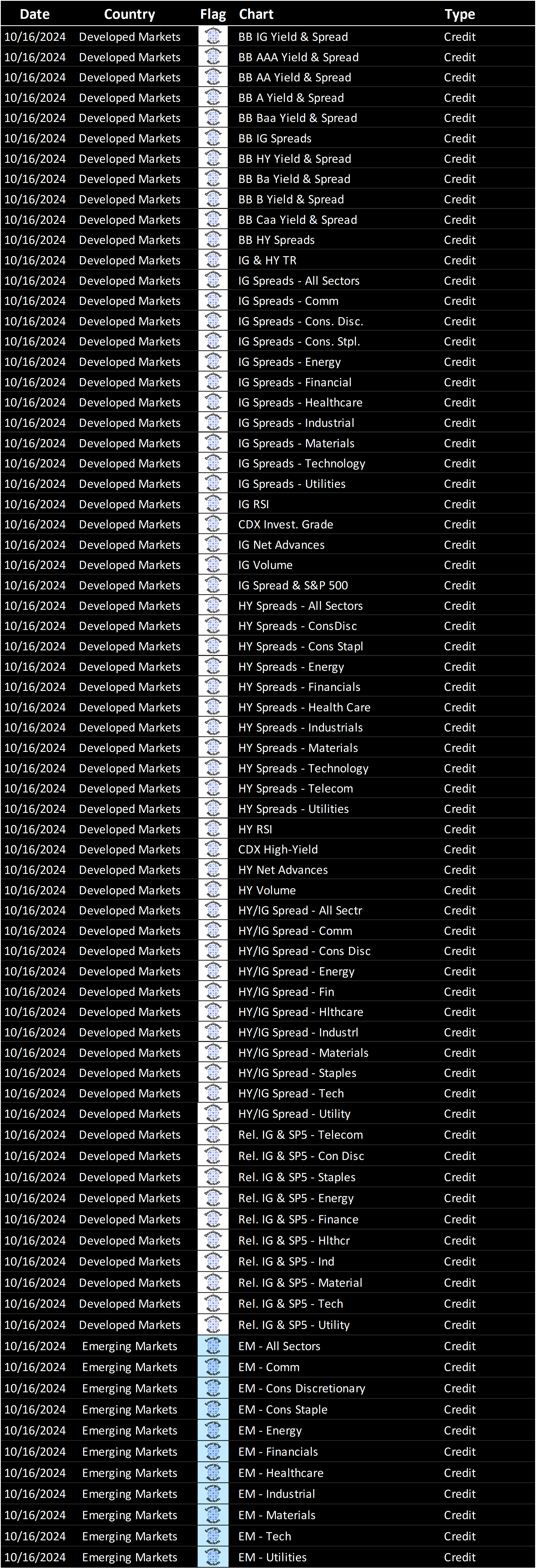 Weekly rotation of debt-based charts